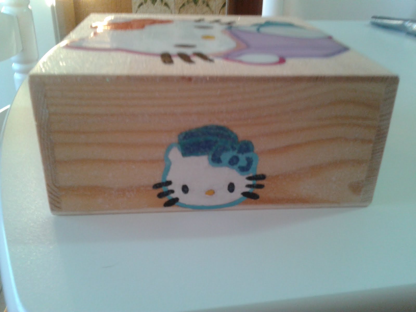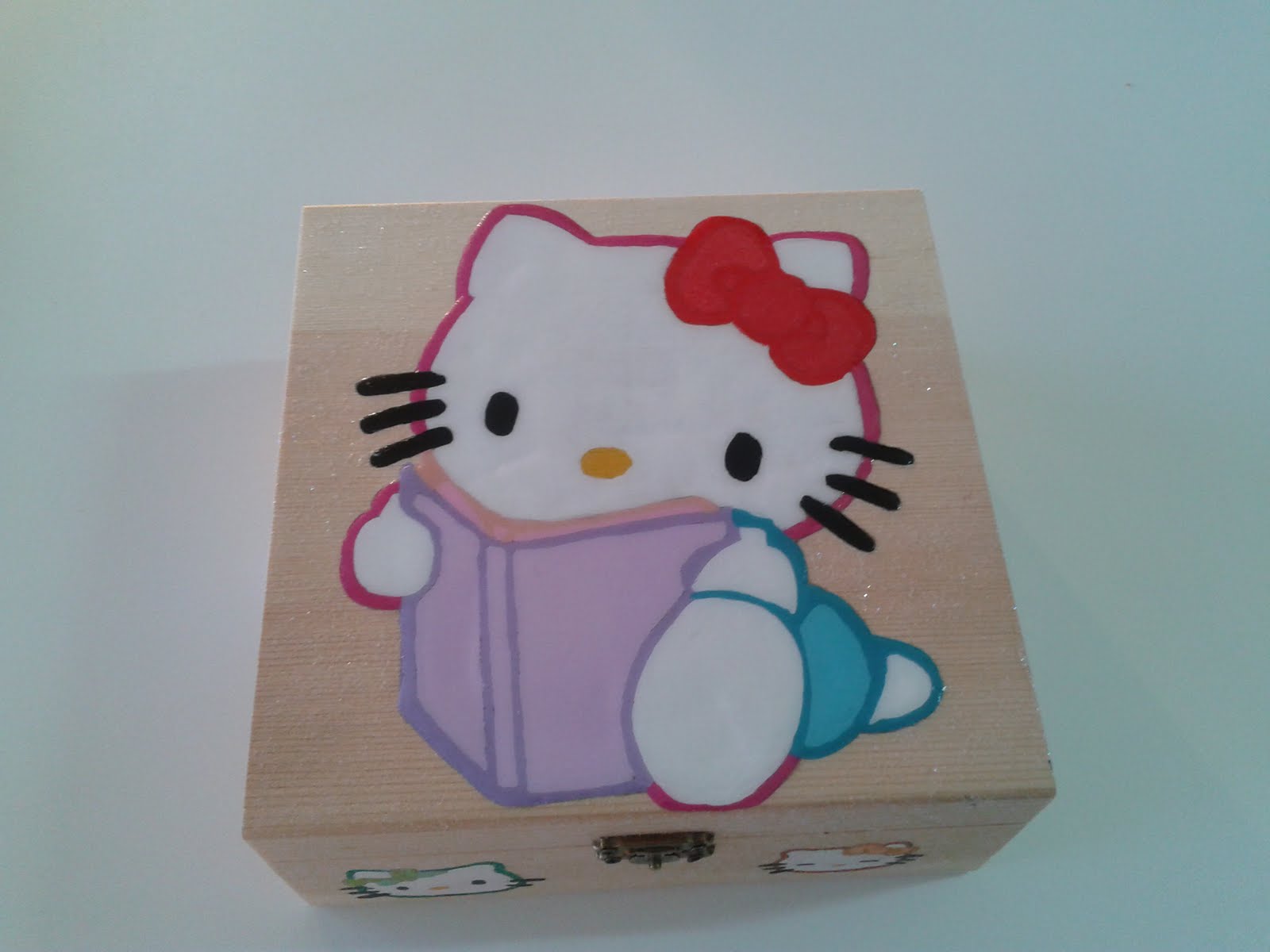 5 de Junho, 2011 Caixa Kitty Sandra Rafael azul, efeitos florais, kitty, laços, laranja, marinheiro, rosa, verde Sem fundo pintado,Kitty com livro Vista da frente,kitty em tons de verde ea outra em tons de laranja Vitsa de lado,kitty com flor em tons de rosa Vista de lado,kitty com chapeu de marinheiroem tons de azul Valor: 15 euros