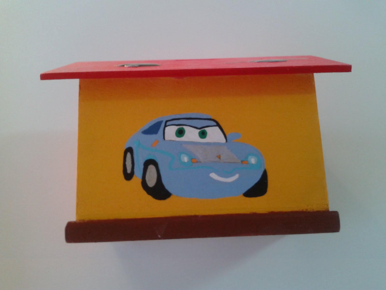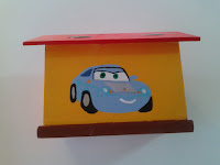 Um dos lados do telhado, com autocolantes de personagens dos cars |