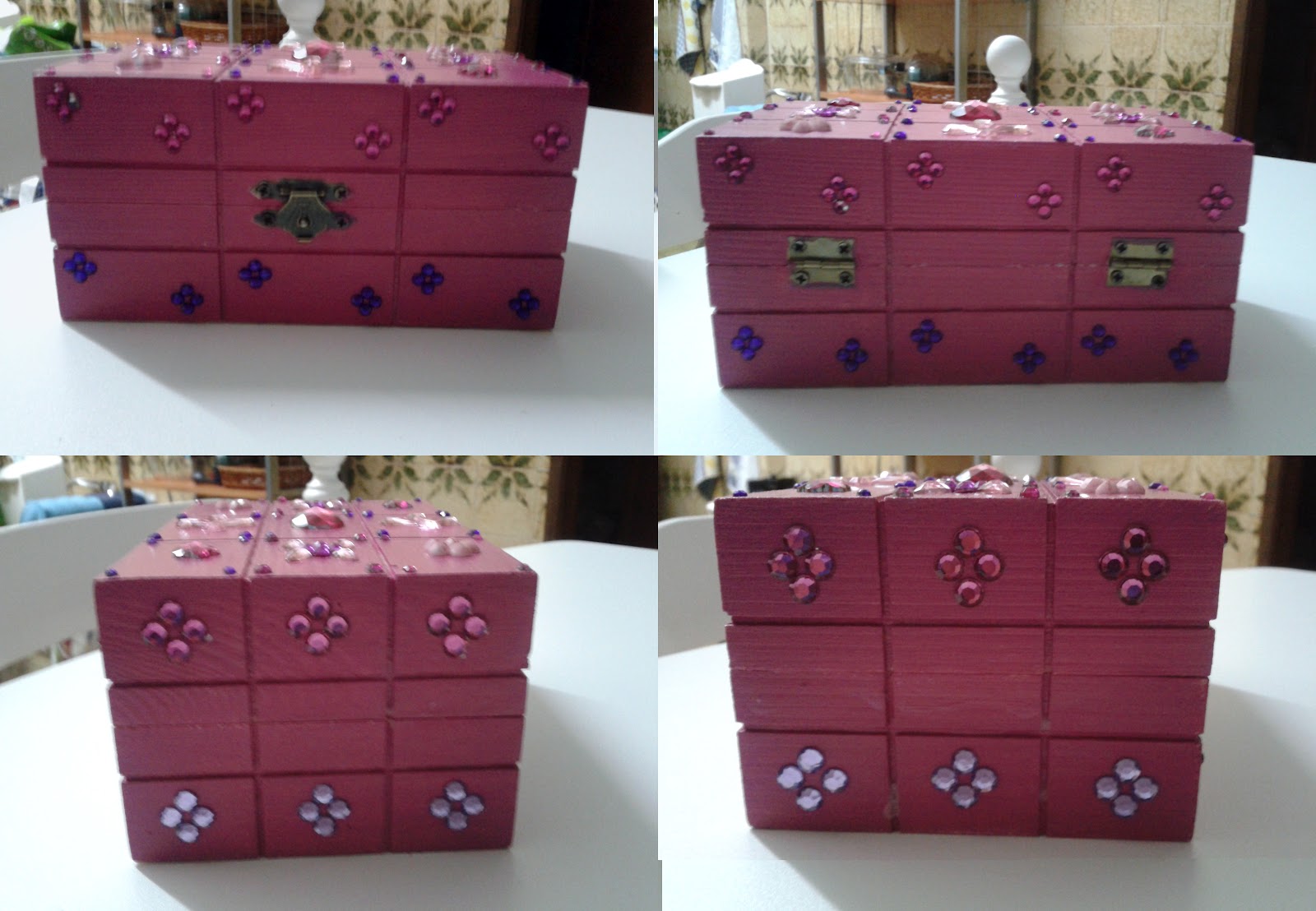 2 de Abril, 2012 Conjunto de caixas com Strass Sandra Rafael azul, rosa, roxo, strass Com fundo azul, aplicadados varios strass em tonsde azul ( escuro e claro ) As restantes vistas Com fundo rosa, aplicadados varios strass em tonsde Rosa( escuros e claro) e roxo As restantes vistas