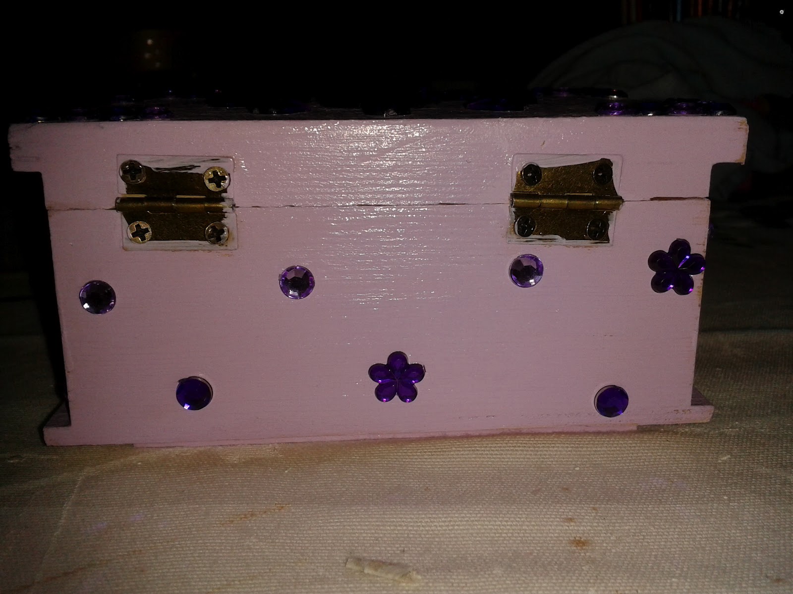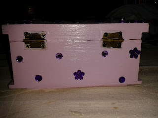 22 de Abril, 2012 Caixa Lilas com Strass Sandra Rafael flores, lilás, roxo, strass Caixa com fundo lilas, aplicados strass roxos escuros e claros Vista de frente Vista lateral Vista de tras Valor: 8 euros