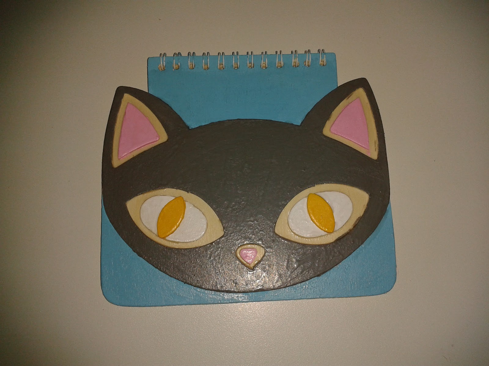 3 de Junho, 2012 Bloco de Notas Sandra Rafael azul, bloco de notas, cinzento, gato, madeira Bloco de notas com capa em madeira,em forma de gato. Gato em cizento e fundo azul turquesa Valor: 10 euros