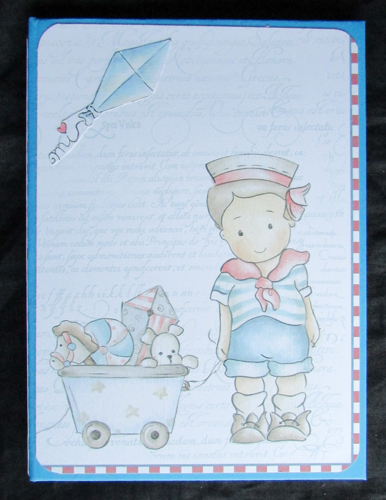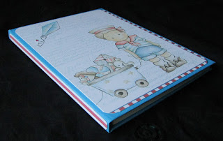 Caderno tamanho cerca de A5 com 50 folhas, com cartolina azul, decorado com papel de scrap da colecção Dayka |