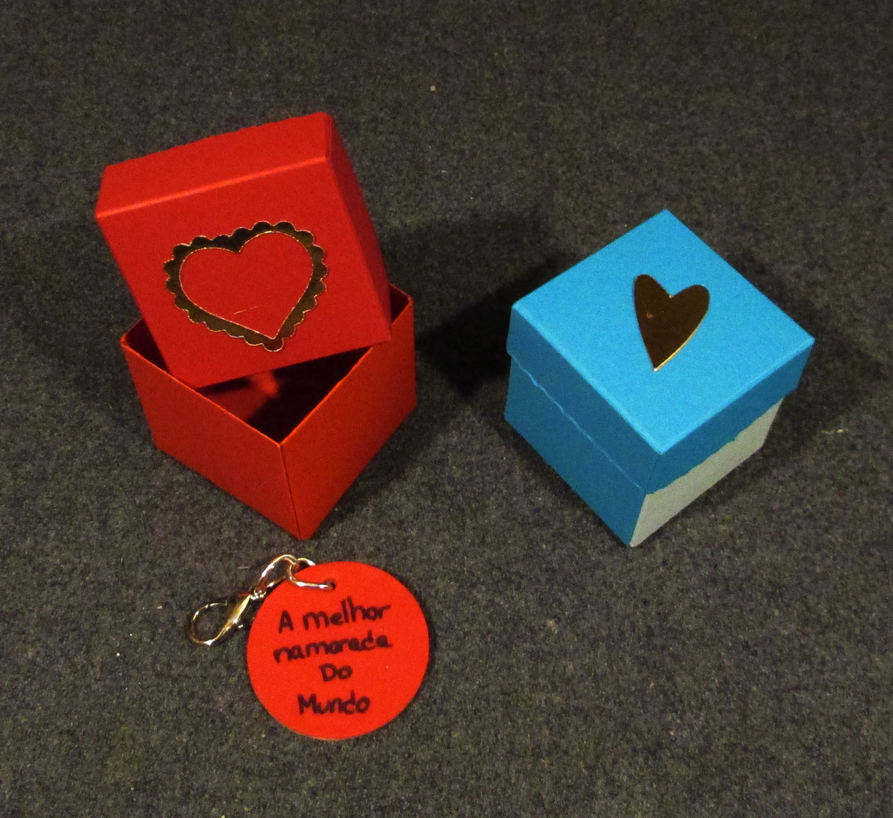 Caixinha em cartolina 5×5 com porta chaves de 4,5cm com a mensagem que pretenderem 🙂