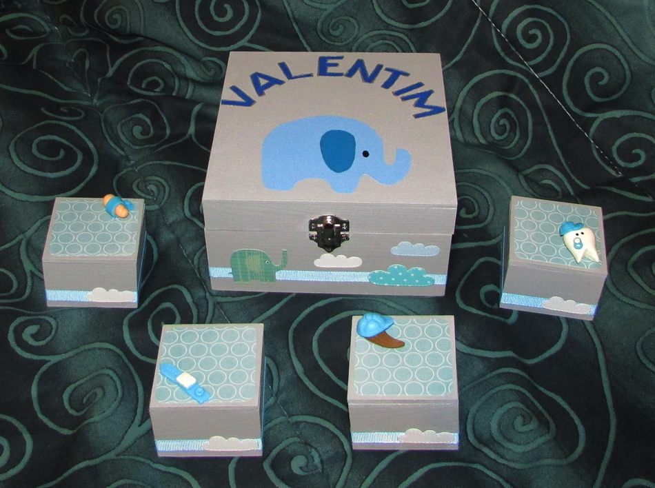 Uma caixinha para guardar as lembranças de nascimento 😃personalizada com o nome e decorada com o tema do baby shower 😃