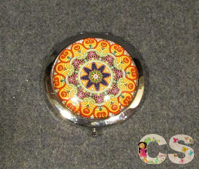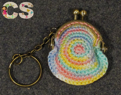 O espelho de bolso, com o colar e com um porta chaves em croché todos catitas 😃😃